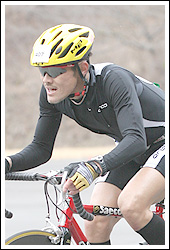 1 バイクでは、規定のヘルメットと用具。ランではシューズを着用。